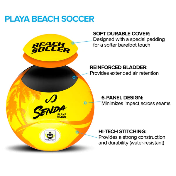 The Senda® Playa Beach Soccer Ball is designed with a special padding for a softer barefoot touch.
