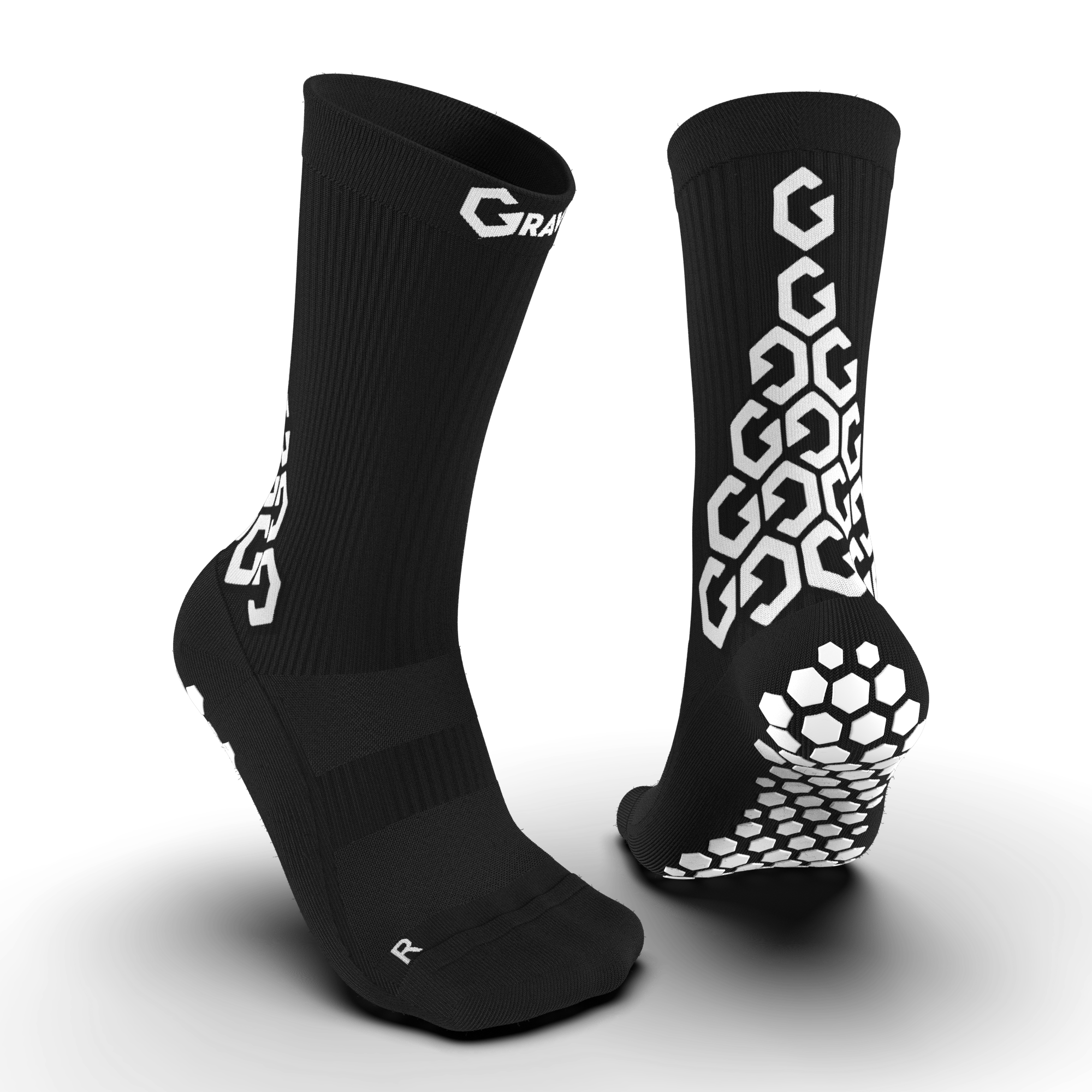 Gravity Pro grip socks have the same non-slip system you are used to. The silicone pads across the sole prevent foot slippage during physical activity, increasing your agility and mobility while keeping your feet always locked in place.