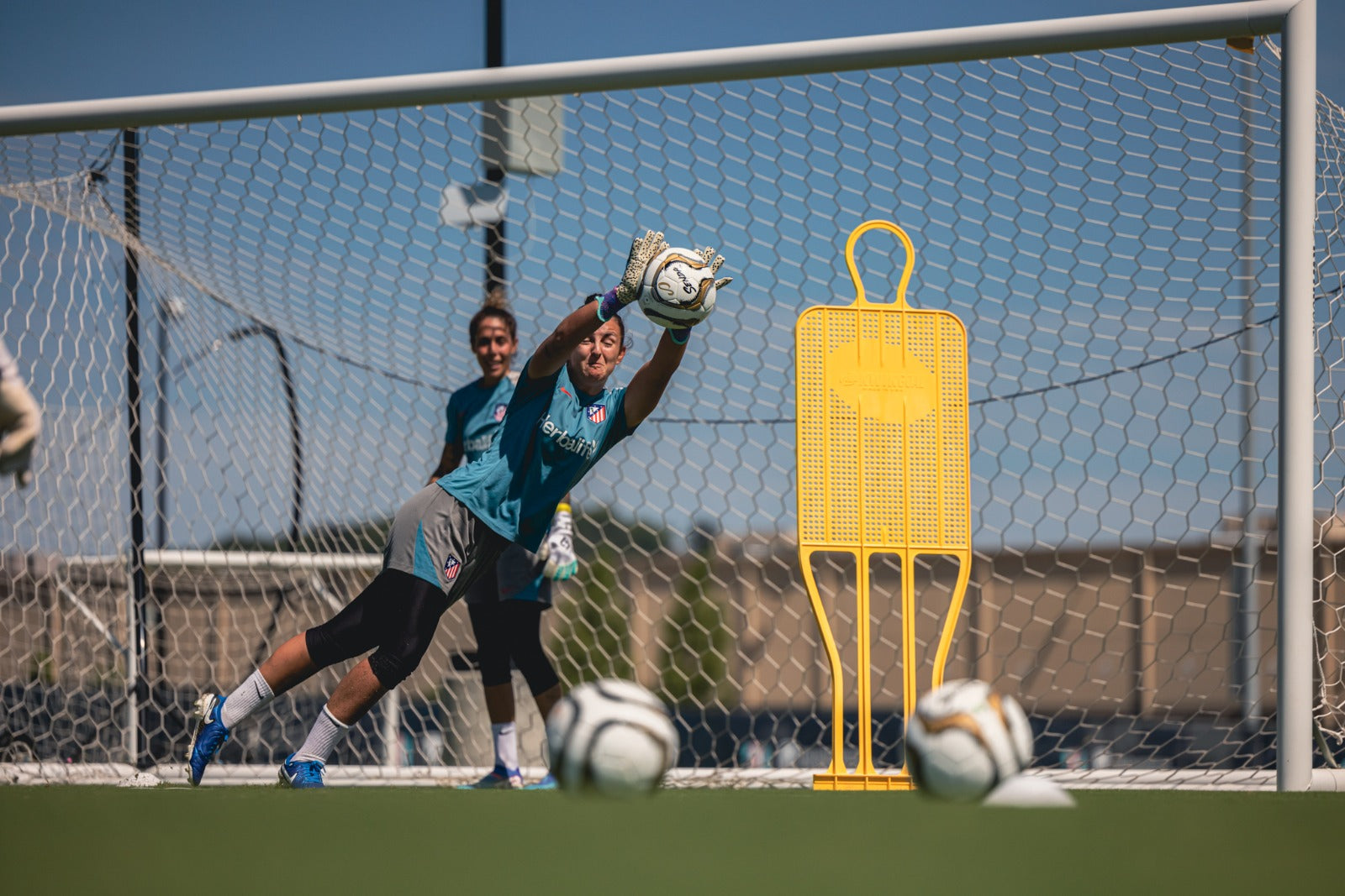 Atlético de Madrid in action, saving with the Senda ball.