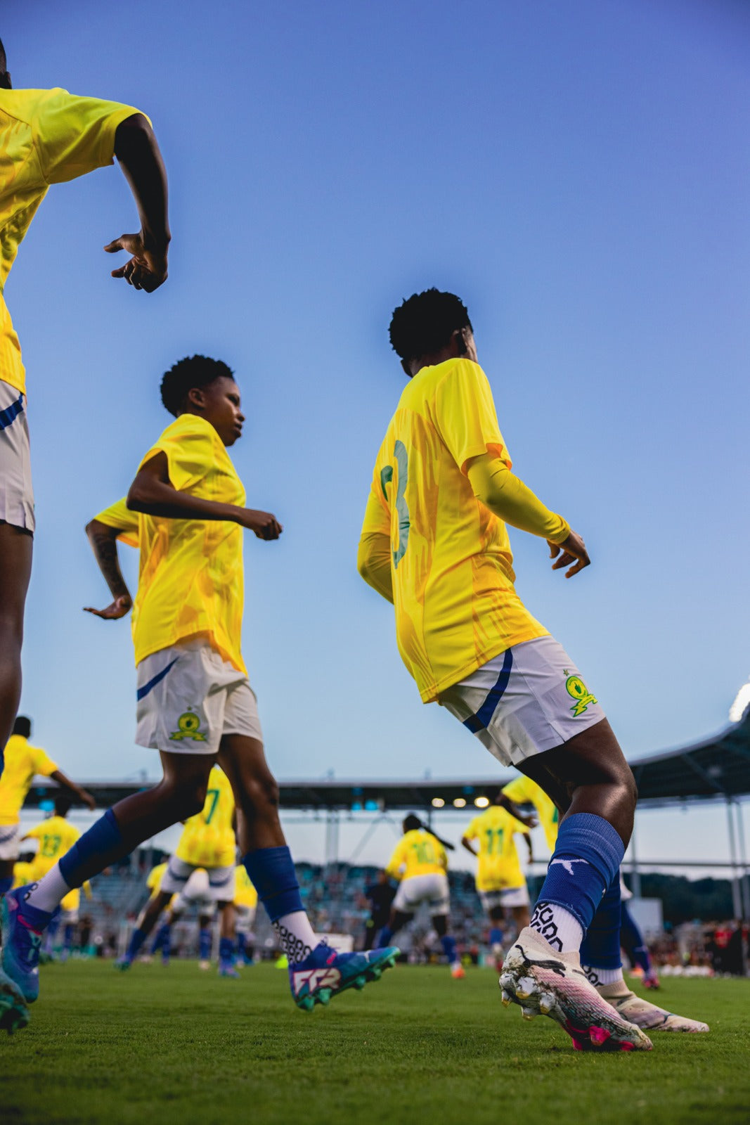 Mamelodi Sundowns showing off their Blue Senda Gravity Grip Socks.